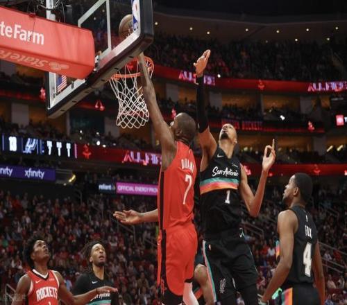 火箭主场迎战马刺,火箭先发:杜兰特、史密斯、申京、奥科吉、阿门!马刺先发:尚帕尼、巴恩斯、文班亚马、福克斯、卡斯尔!